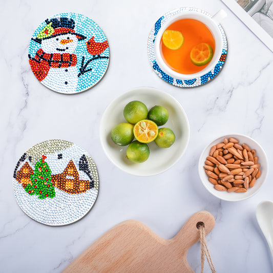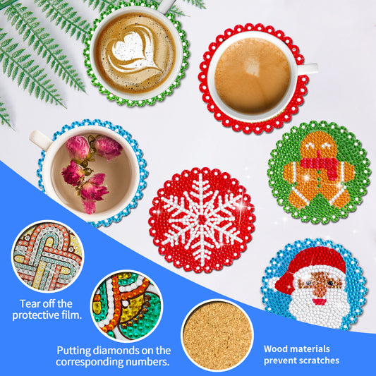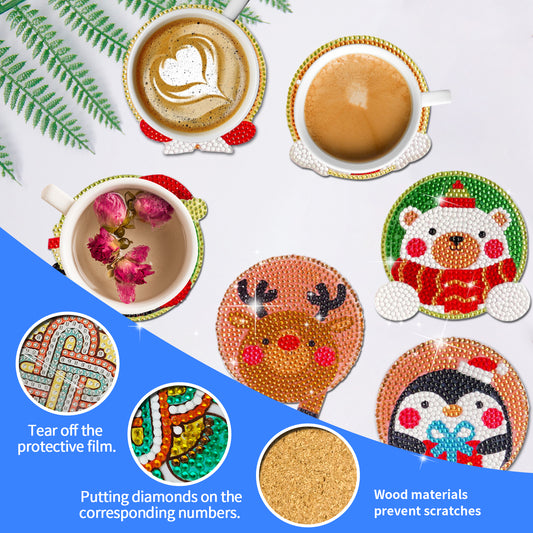 6 Pcs Christmas Diamond Painting Coasters with Holder