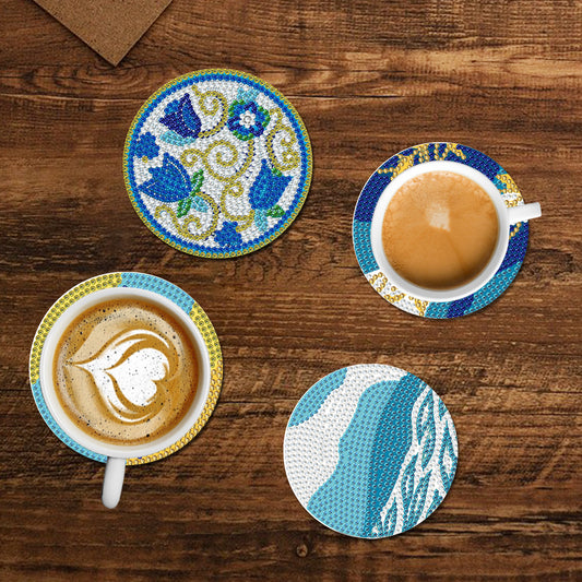 8Pcs Plants Diamond Painting Coasters with Holder