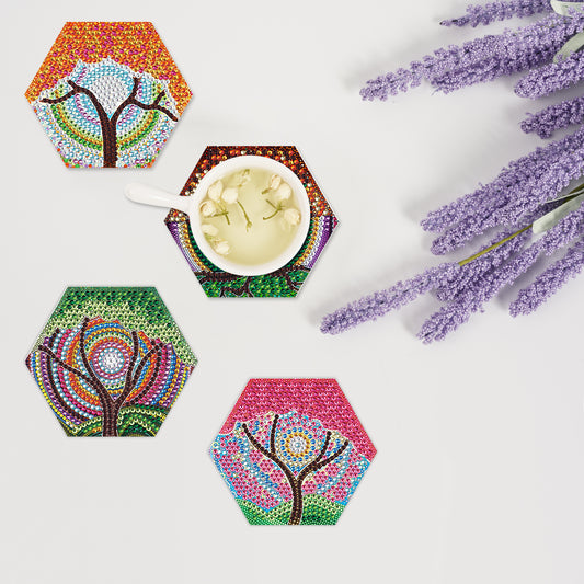 8Pcs Colorful Tree Diamond Painting Coasters with Holder