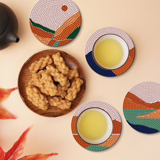 8Pcs Mountain Diamond Painting Coasters with Holder