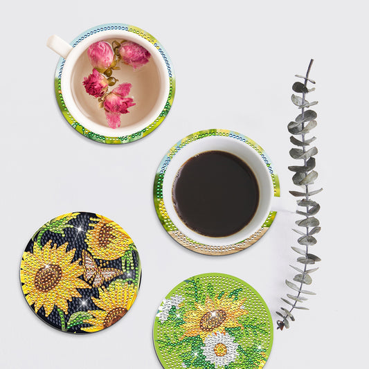 8Pcs Sunflower Diamond Painting Coasters with Holder