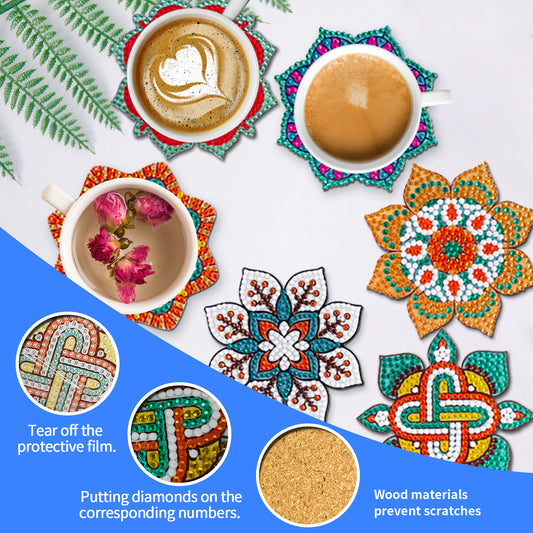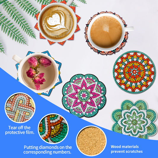 6 Pcs Mandala Diamond Painting Coasters with Holder