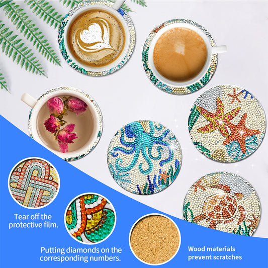 8Pcs Ocean Animal Diamond Painting Coasters with Holder