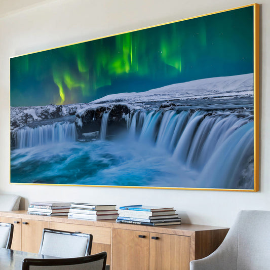 Green Aurora Waterfall - Full Round Diamond Painting - 70x40cm