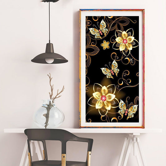 Golden Flower Butterfly- Full Round Diamond Painting - 30x55cm