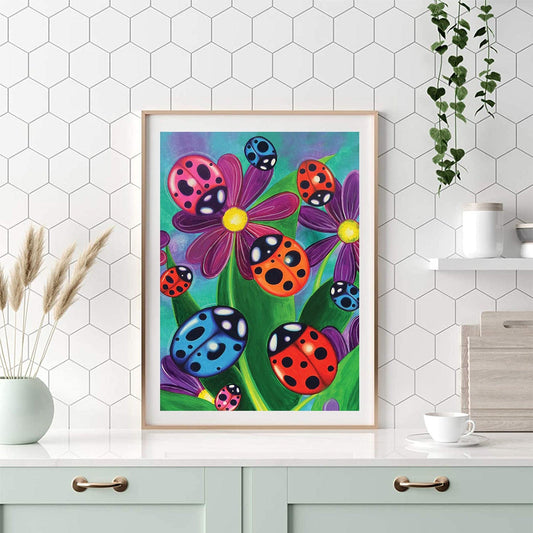 Ladybug flower - Full Round Diamond Painting - 30x40cm